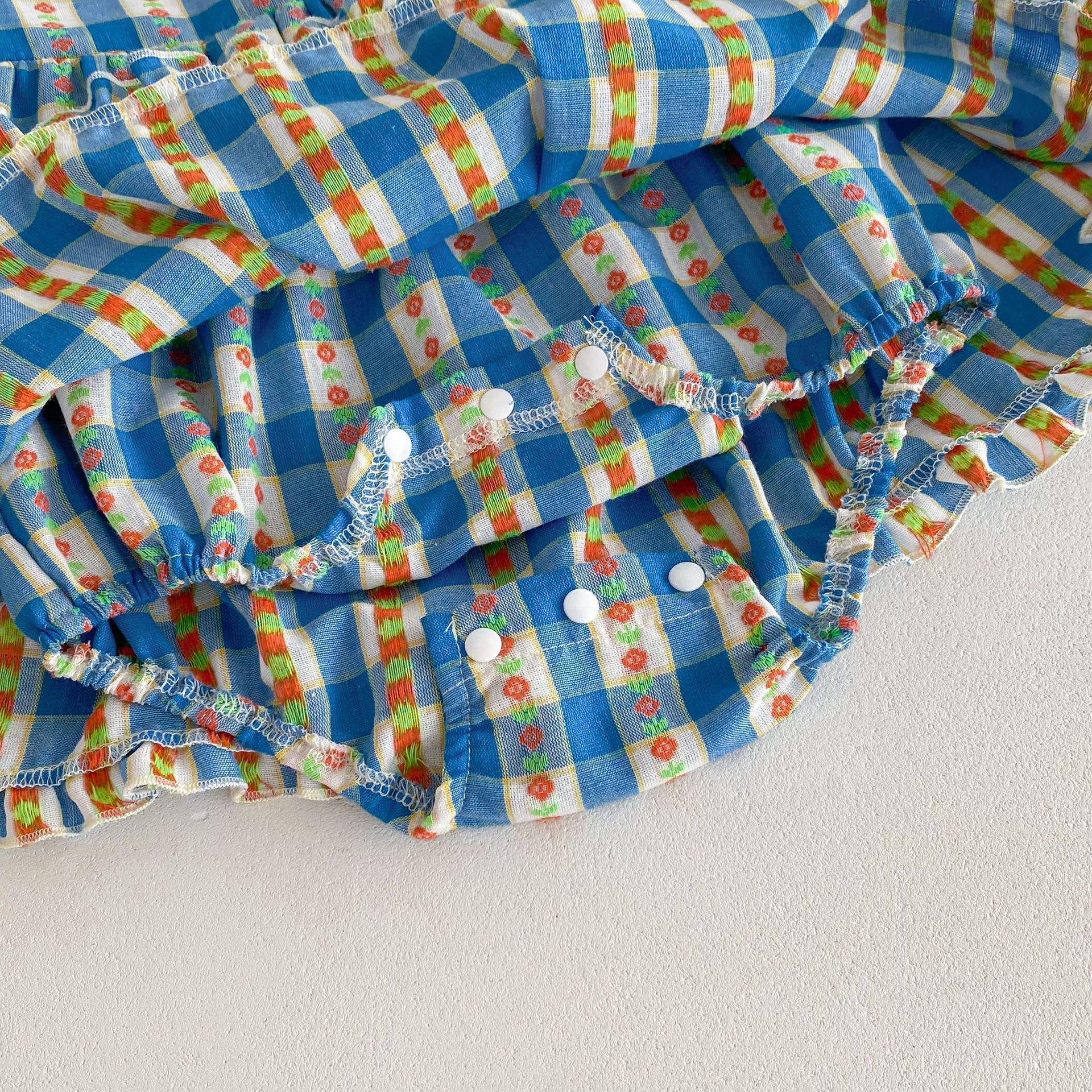 Autumn Arrival Baby Girls Long Sleeves Floral Plaid Ruffle Neck Onesies Dress