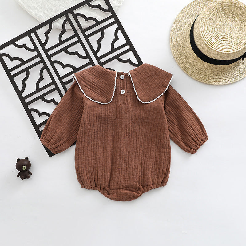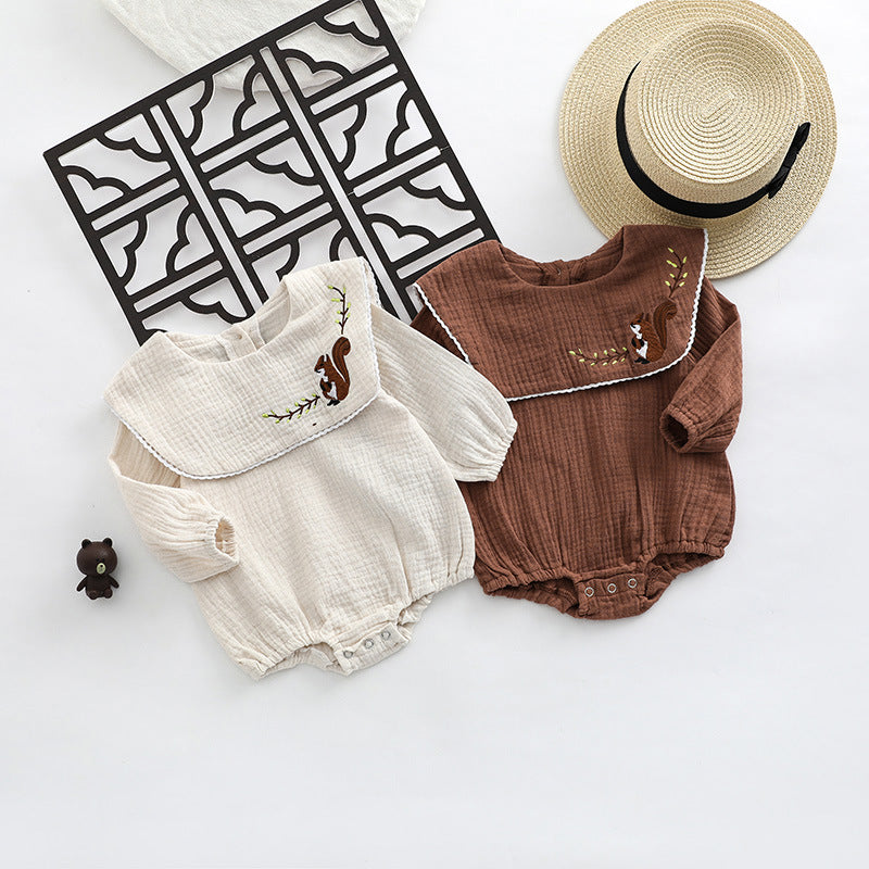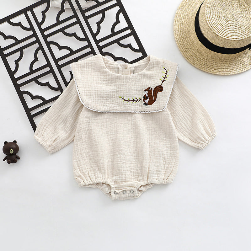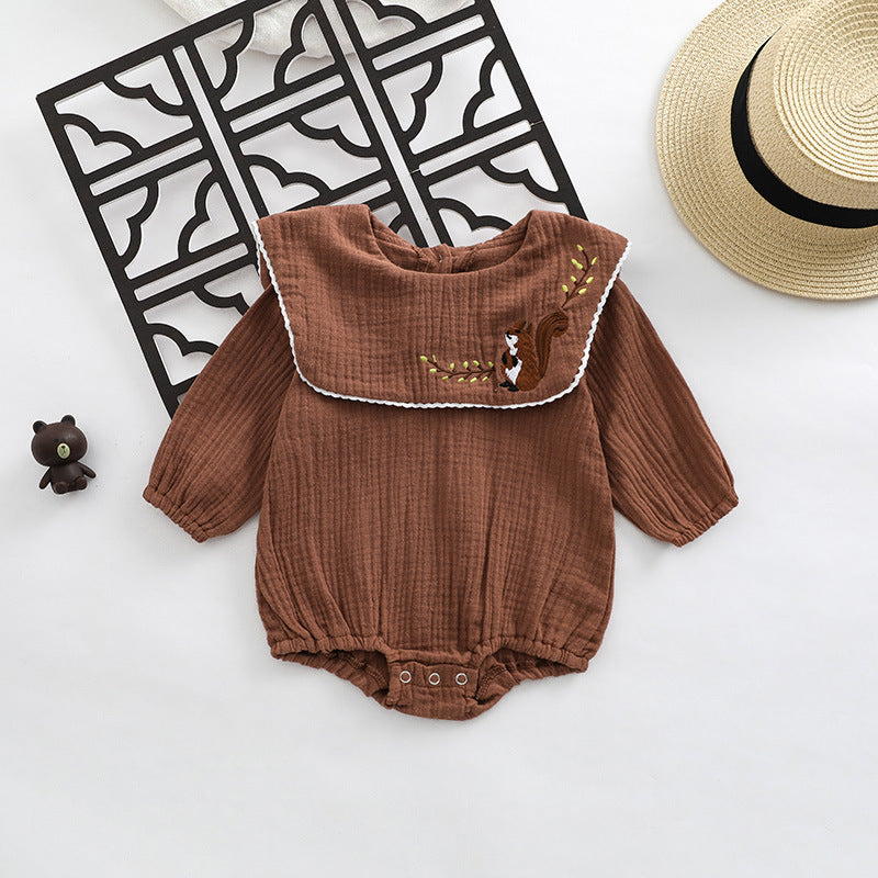 Baby Girl Animal Embroidered Pattern Lapel Design Onesies