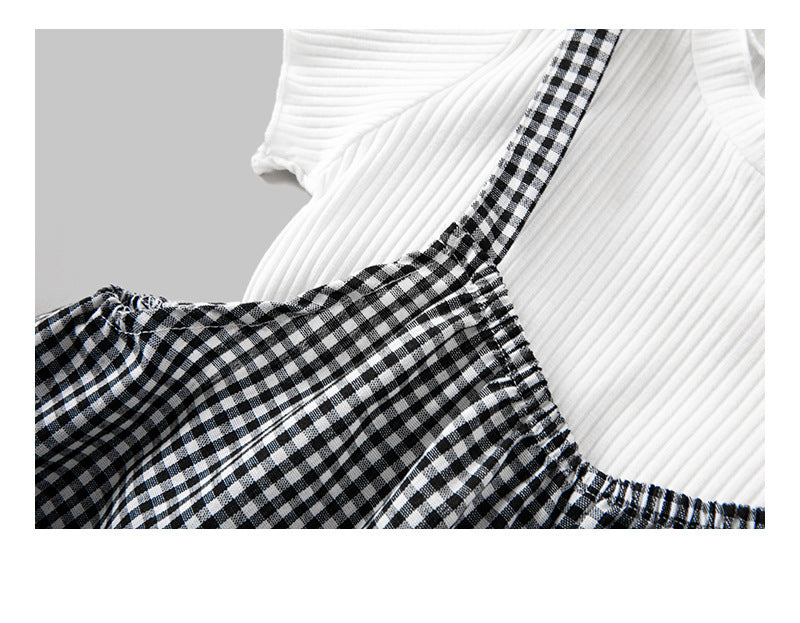 Baby Girl Solid Color Tops Combo Plaid Pattern Overalls Sets