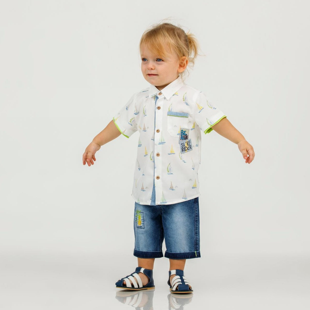 Un nouveau look pour votre petit homme composé d'une chemise imprimée (100% Polyester), d'un short en denim ajusté et taille... Read more
