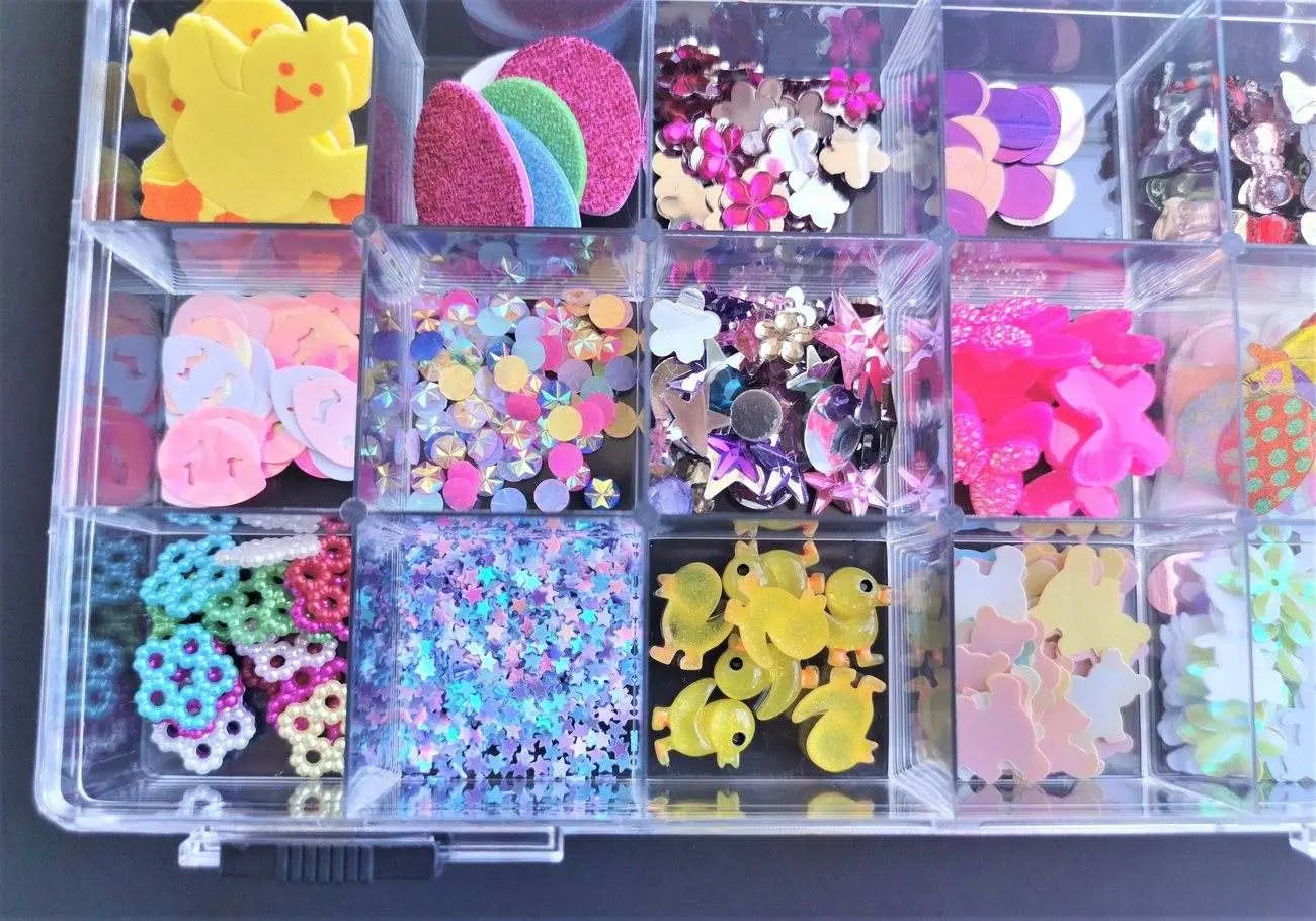 Contents: At least 50 plastic, resin and sequin gems. Our Bling Collections are constantly changing with trends and availability. Your collection may have new gems and bling as well as our favorites.