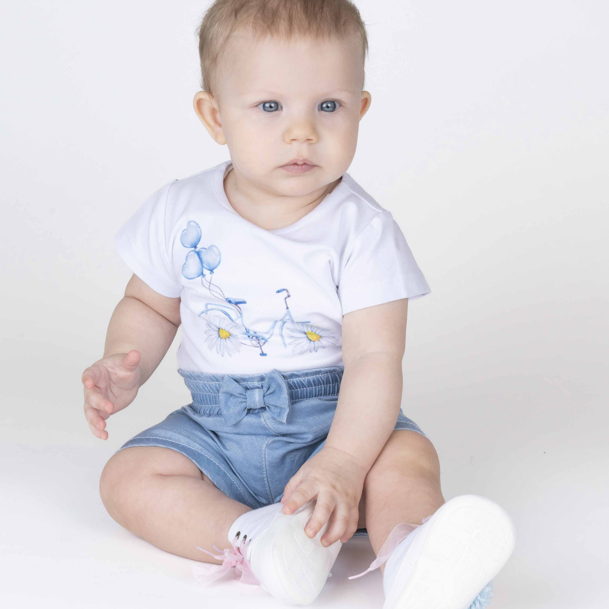 Parfait ensemble d'été pour ta petite princesse comprenant un t-shirt en coton doux avec des shorts en denim brillant (100% coton). Perfect everyday... Read more
