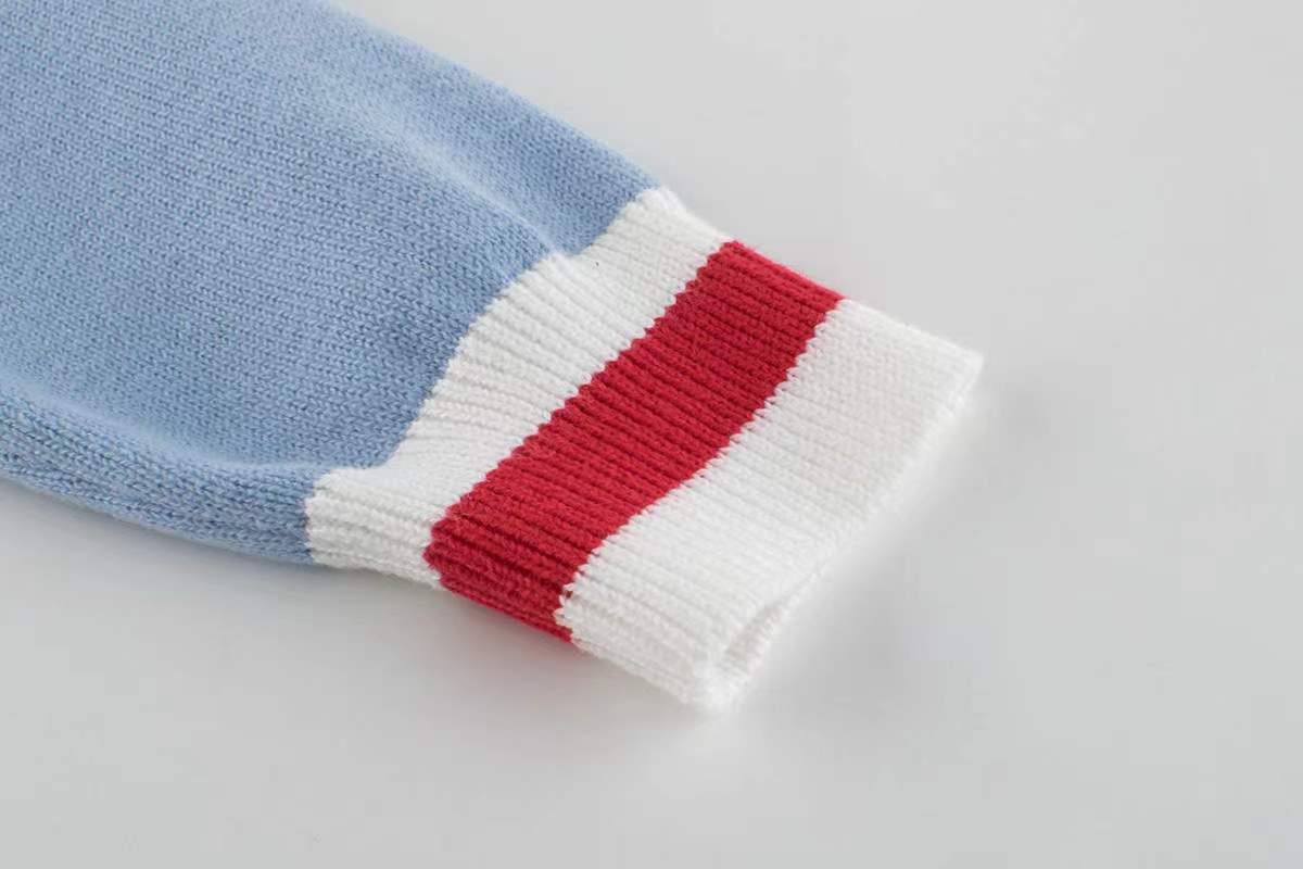 Girls Navy Collar Top Combo Skirt Knitwear Sets