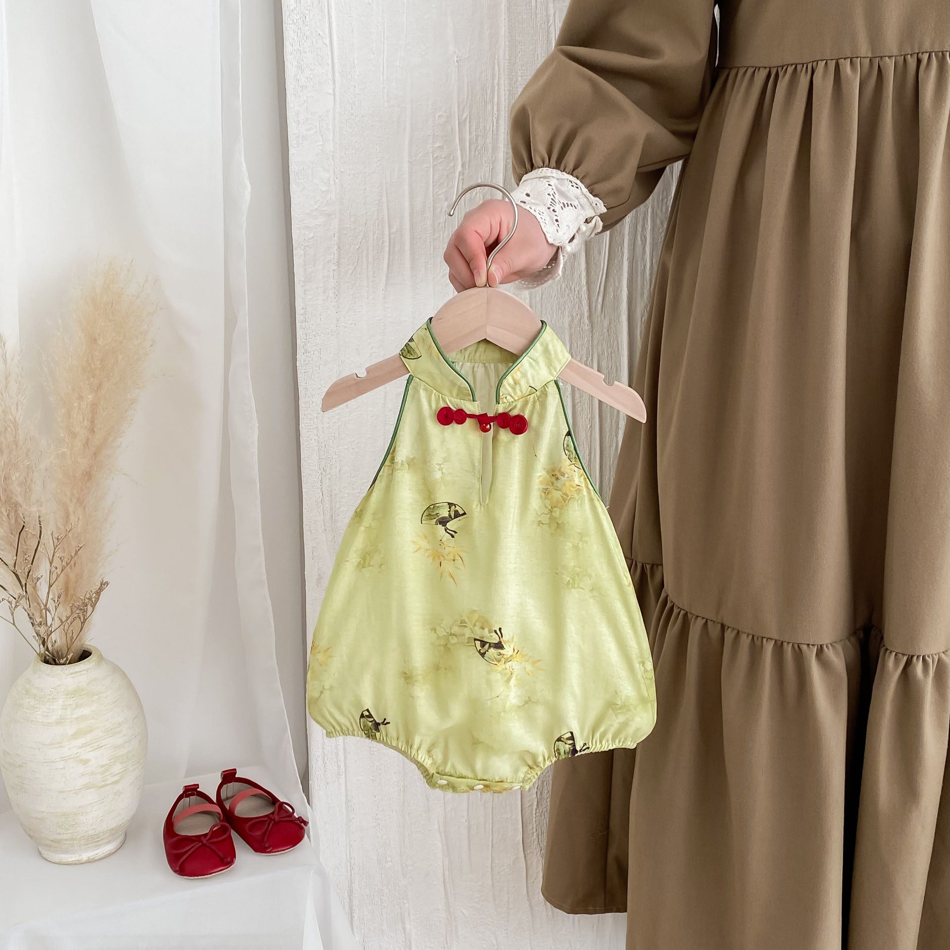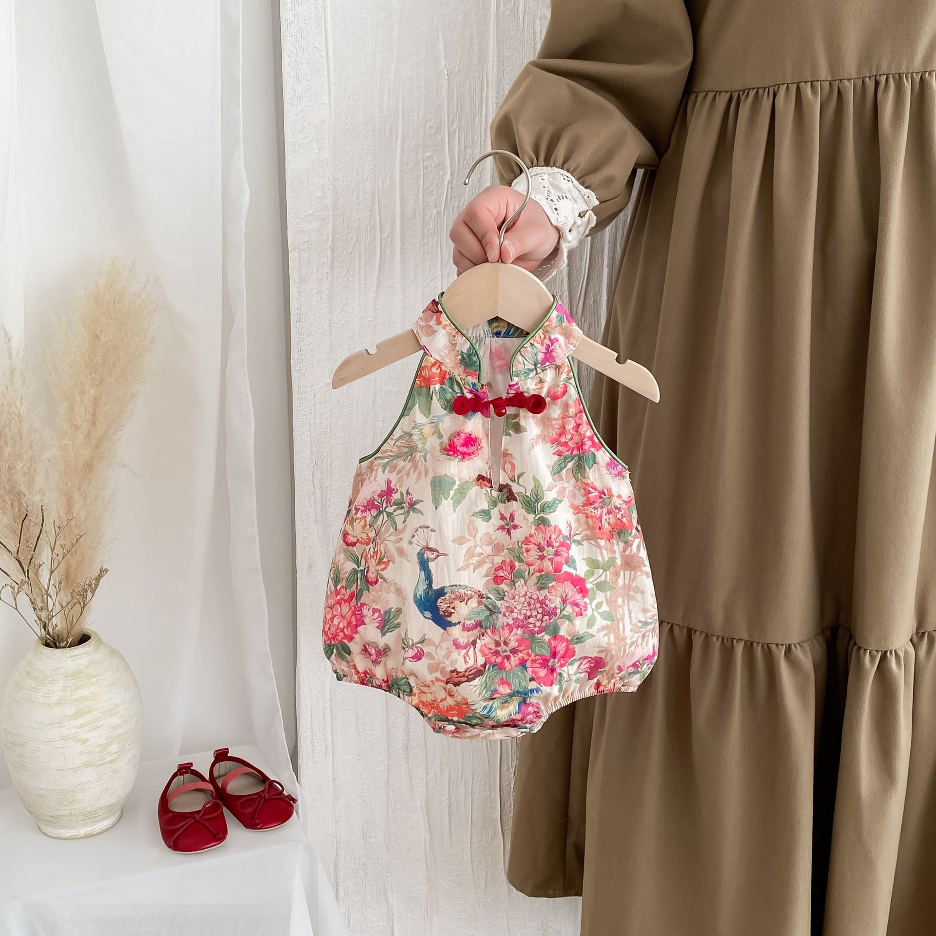 Hot Selling Summer Baby Kids Girls Flowers Pattern Sleeveless Stand Collar Onesies