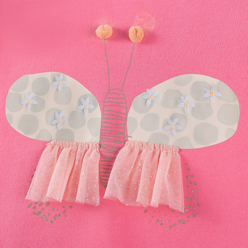 Spring and Autumn Girls Butterfly Cartoon Pattern Long Sleeves Crew Neck Top Sweatshirt and White Pants Clothing Set