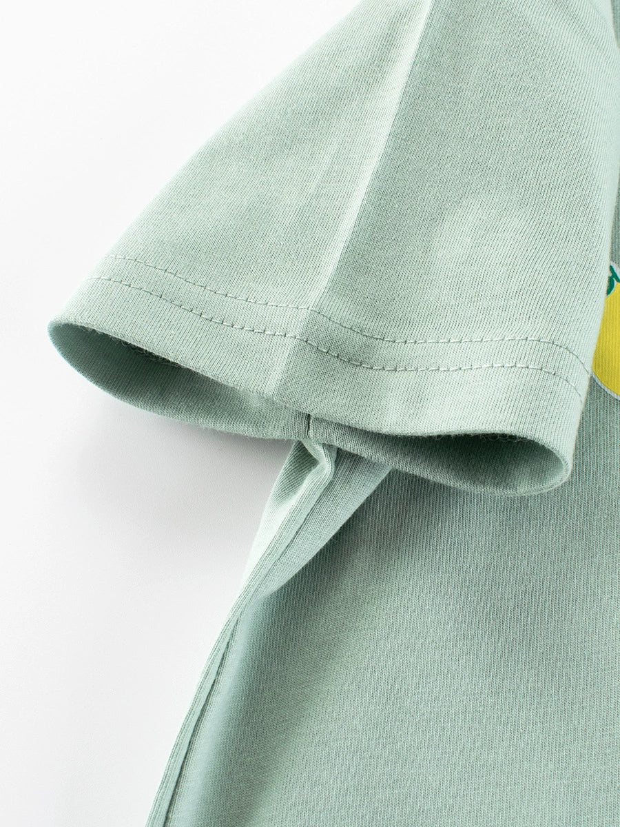 Summer Baby Kids Girls Letters and Fruits Cartoon Print Short Sleeves Crew Neck Top Shirt